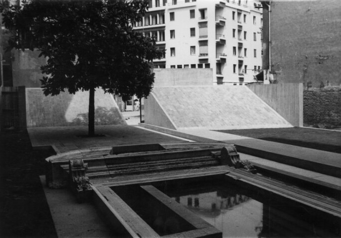 Nel progetto per l’ingresso nello IUAV che gli era stato affidato negli anni sessanta dal consiglio dell’Università e per il quale era stato chiesto di utilizzare una porta di pietra d’Istria ritrovata durante i lavori di restauro del Convento dei Tolentini, Carlo Scarpa decise di adagiare la porta al suolo e di immergerla nell’acqua. […] La collocazione orizzontale di una struttura per essenza verticale qual è una porta non può non essere stata attentamente meditata.